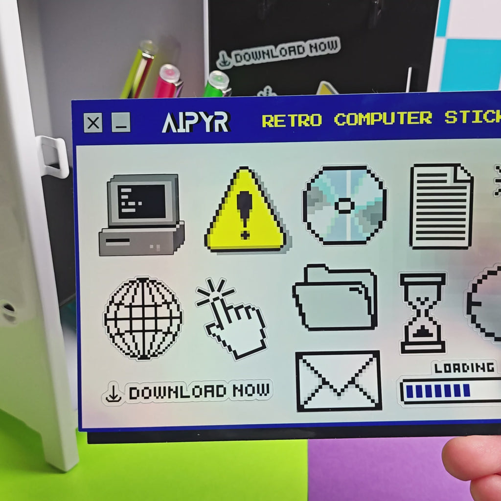 Add some retro nostalgia to your notebook, laptop and more with this holographic sticker sheet! Perfect for lovers of 90s pixel art, old web computer icons, or as a webcore gift for friends!